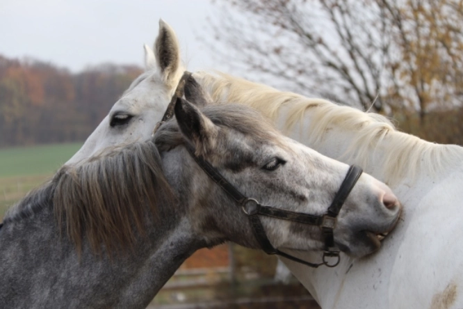 seine Umwelt immer freundlich und aufmerksam wahrnimmt. Ob Dressur, Springen, Gelände oder Voltigieren – er ist immer dabei. Nemo, inzwischen eher weit über 20, das genaue Geburtsdatum gibt es nicht, ist im Gesicht schon sehr weißhaarig geworden und hat in den Hinterbeinen auch schon mit Arthrose zu kämpfen. Bei dieser Form der Arthrose laufen sich die Pferde ein, sodass tägliche Bewegung gut ist. Nemo ist auch noch immer motiviert und wird noch täglich mit Kindern im Reitunterricht bewegt. Im Longen- und Springunterricht wird er nicht mehr eingesetzt. Täglich kann man Nemo beim Spielen mit anderen Wallachen beobachten. Daran kann man erkennen, wieviel Lebensfreude und Energie noch in ihm stecken.