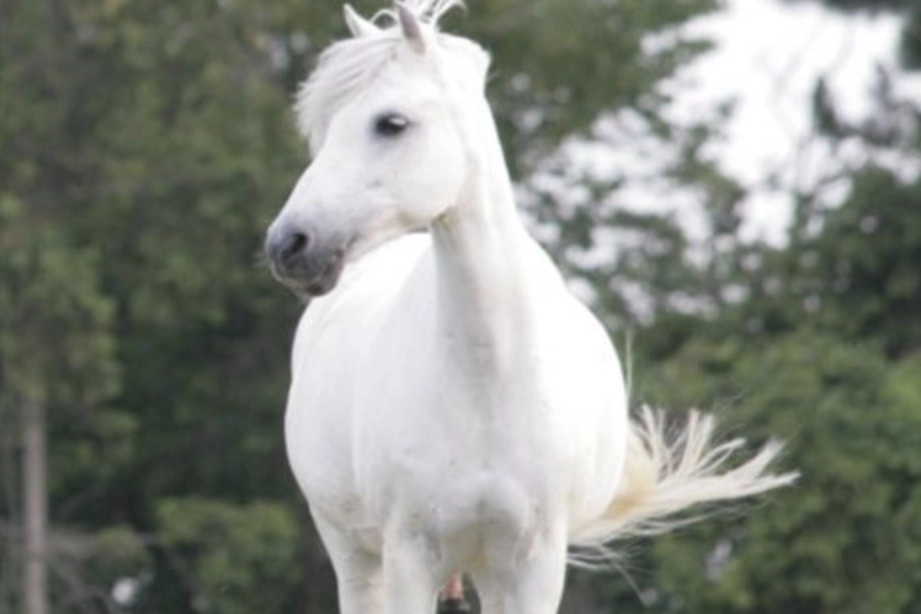 Bobby ist ein 1,65m großer, insgesamt sehr braver, rittiger Schimmelwallach, der 2018 aus Irland zu uns kam.